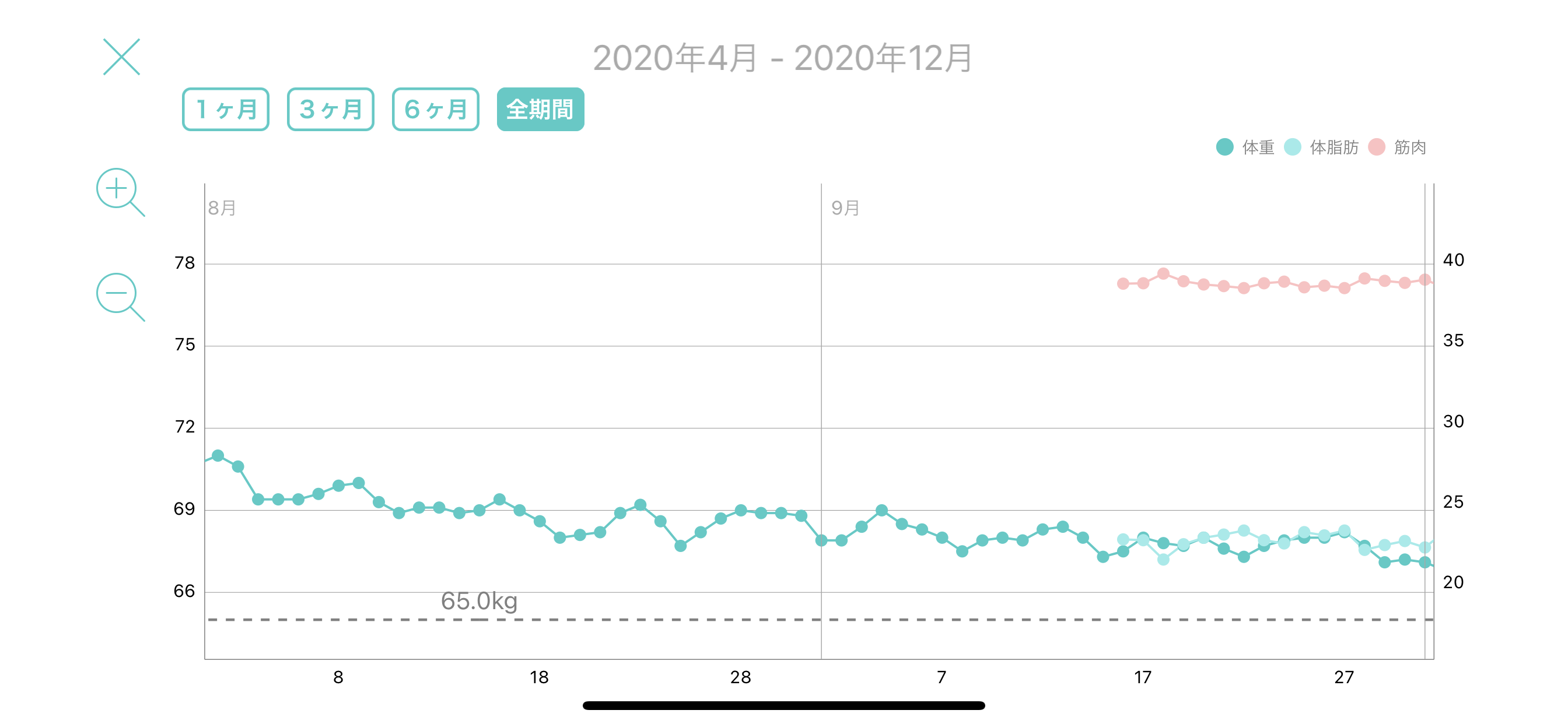 体重計を変えてから体脂肪と筋肉も記録するようにしてみました。