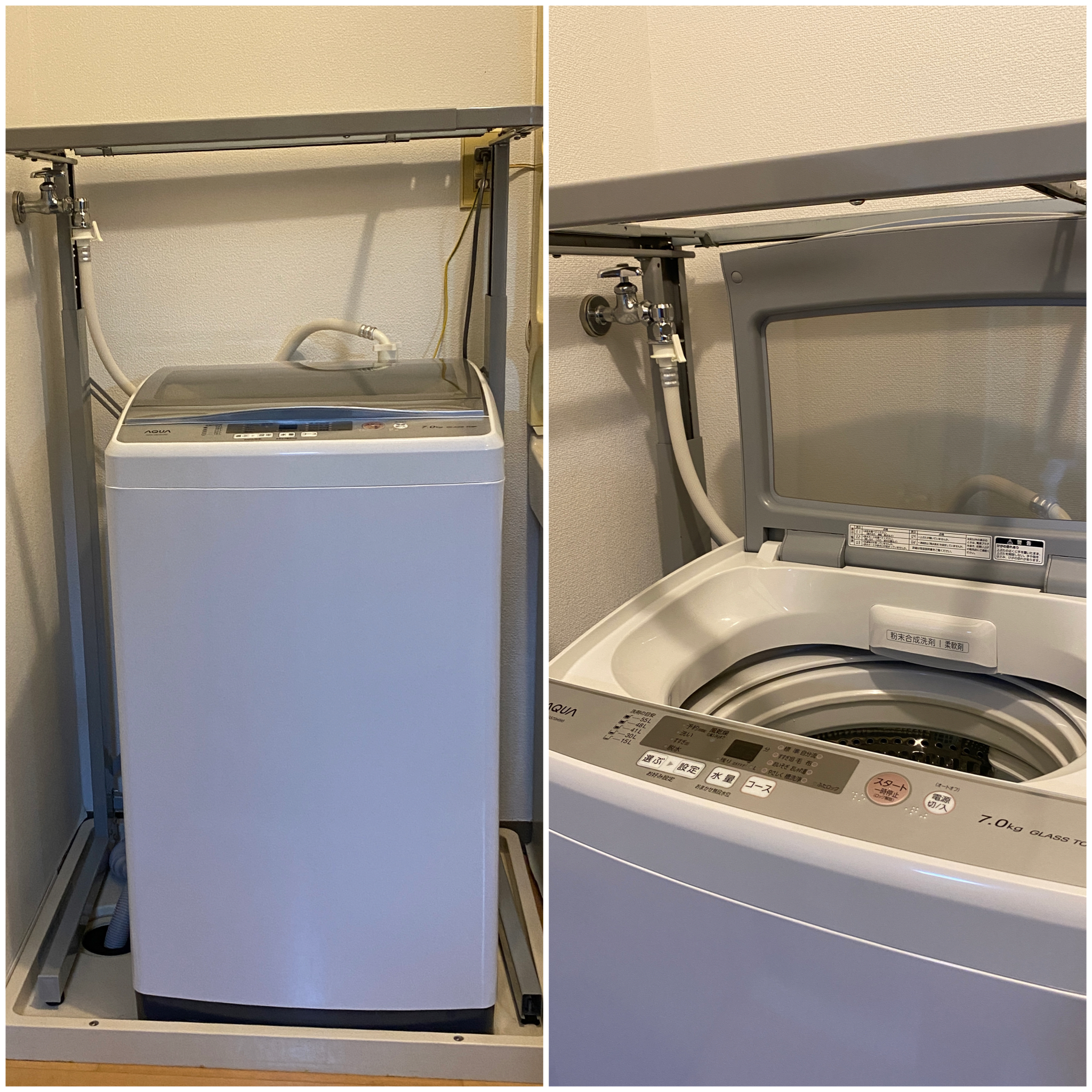計算してたかのように水道の蛇口や洗濯機のフタはギリギリセーフ。笑
