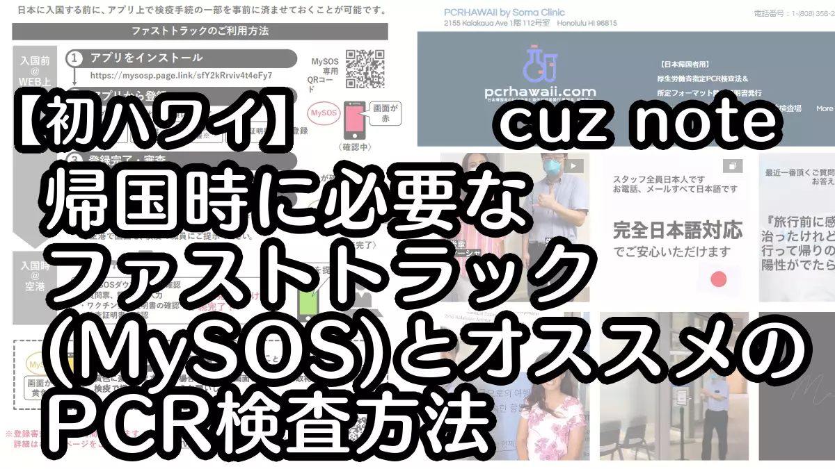 【初ハワイ】帰国時に必要なファストトラック(MySOS)とオススメのPCR検査方法