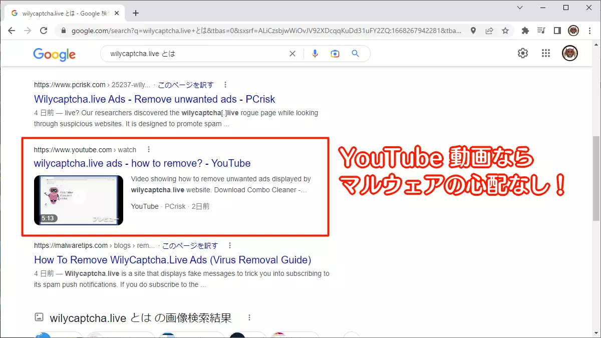 ちゃんとしたセキュリティサイトは無いかと検索結果を探しても見つからなかったのですが、YouTube 動画に wilycaptcha.live の削除の仕方の動画があることを発見!