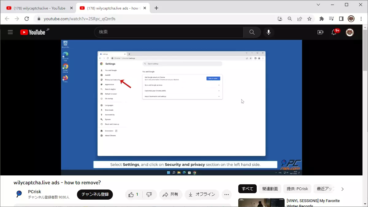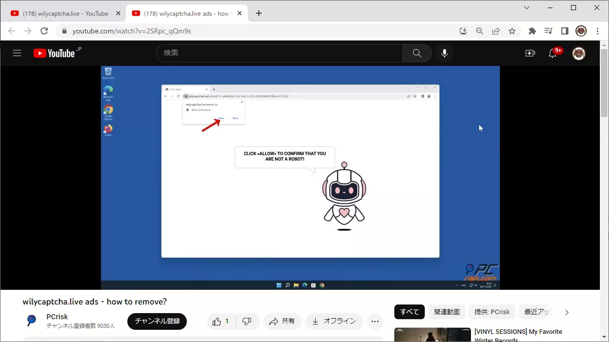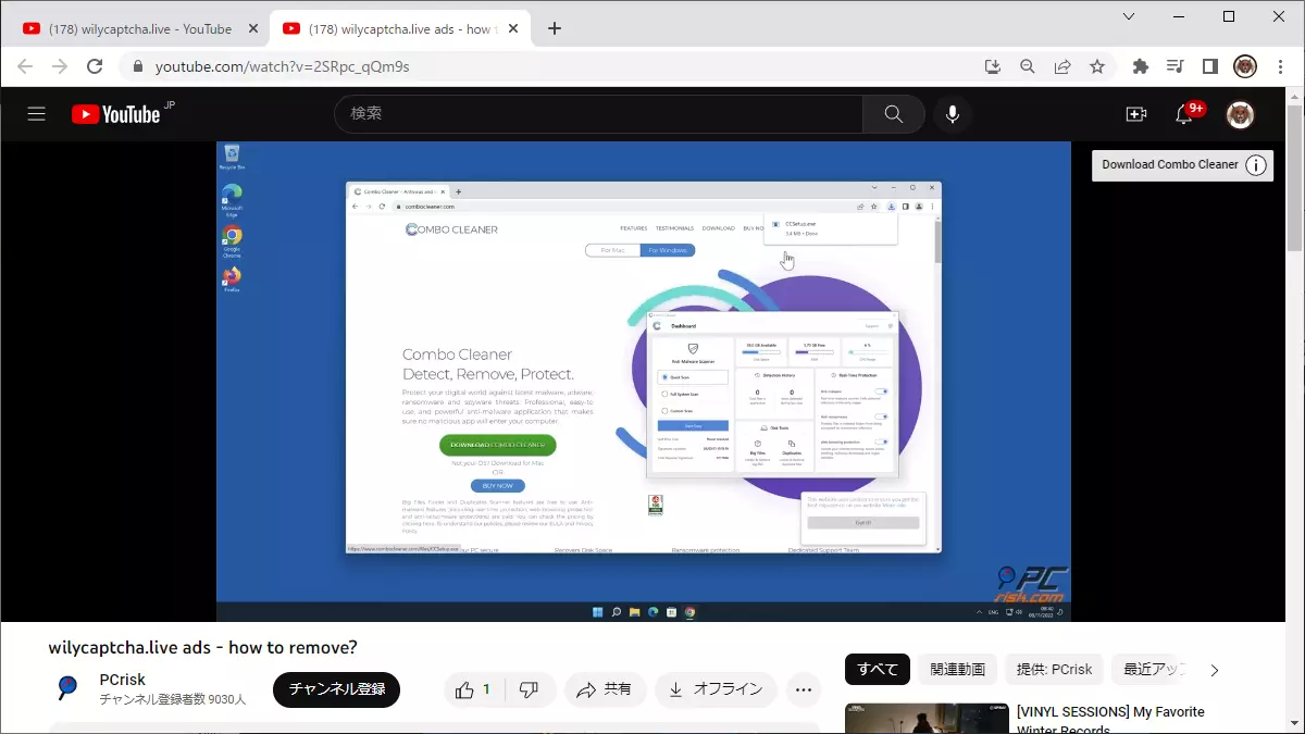 PCrisk というアカウントの人はチャンネル登録者数が9000人で4000本も動画を出してるので、とりあえず PCrisk が投稿している動画を見てみることにしました。