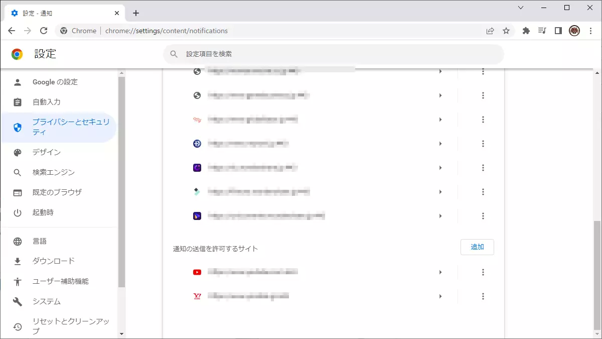 - 「通知の送信を許可するサイト」に「https://wilycaptcha.live:443」が出てるので右の「:」で「削除」を選択、削除されたことを確認