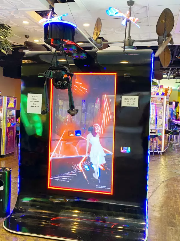 このゲーセンは最初にお金でカードにトークン(eT)をチャージして、トークンを使って遊ぶシステムのようでした。チャージの機械を見ると、$50でeT280と書かれてたので、Beat Saber は eT36 → $6.4 → 約900円!高っ!