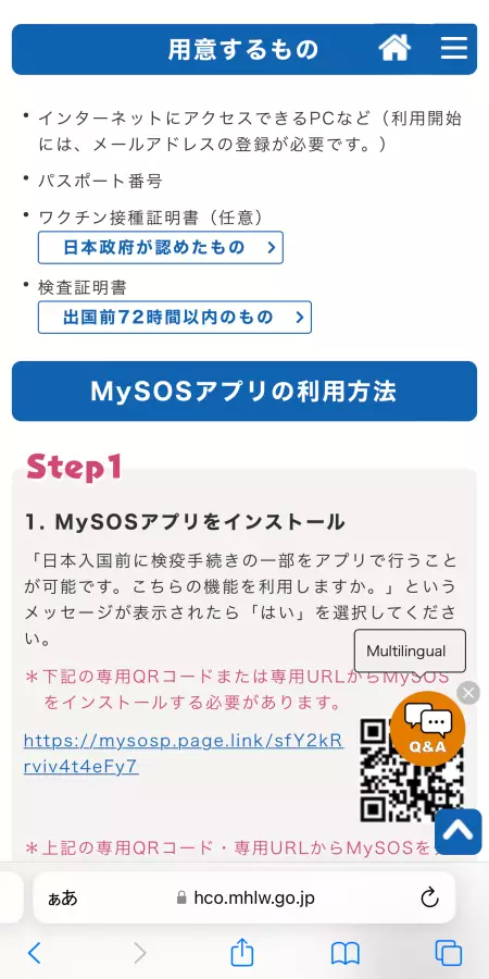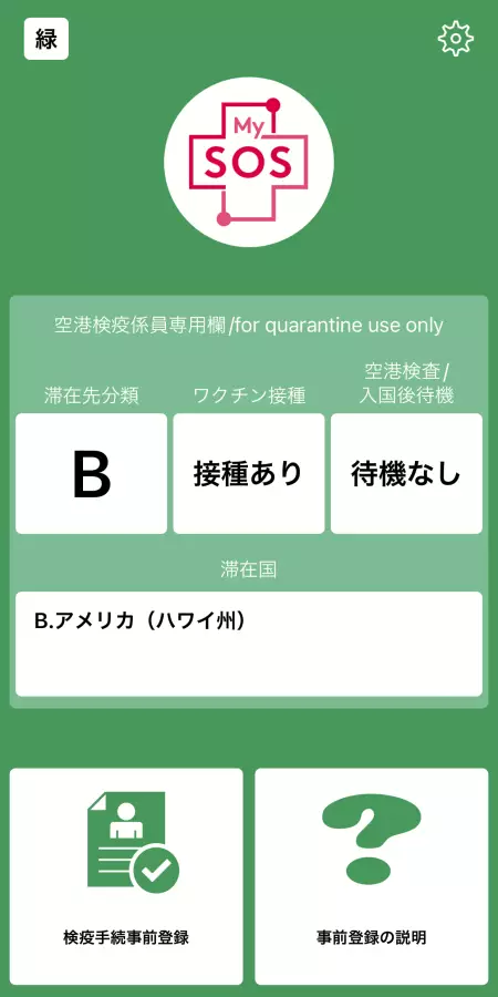 MySOS アプリはもともと健康サポートアプリのようで、急遽、入国用の機能を追加していたようですね。
