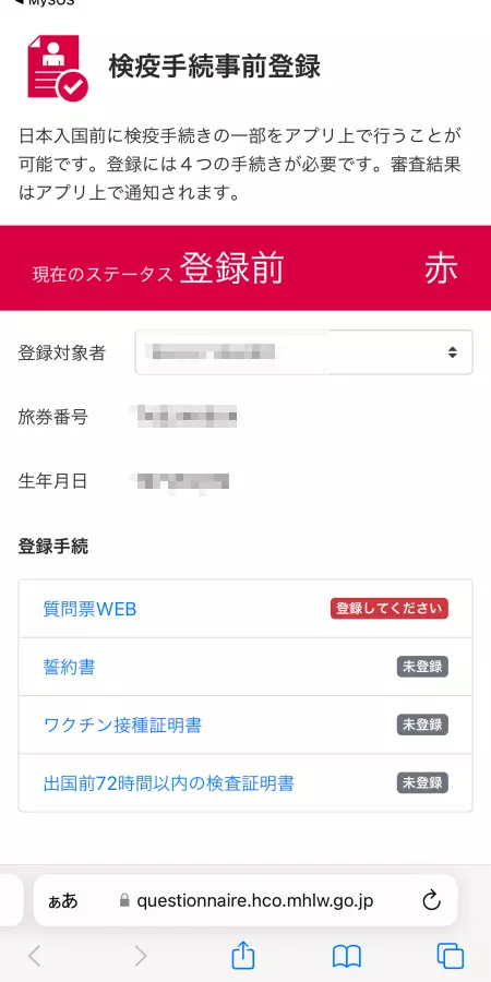 そのあと、Visit Japan Web へデータを引き継ぐと画面が青になり all OK となります。