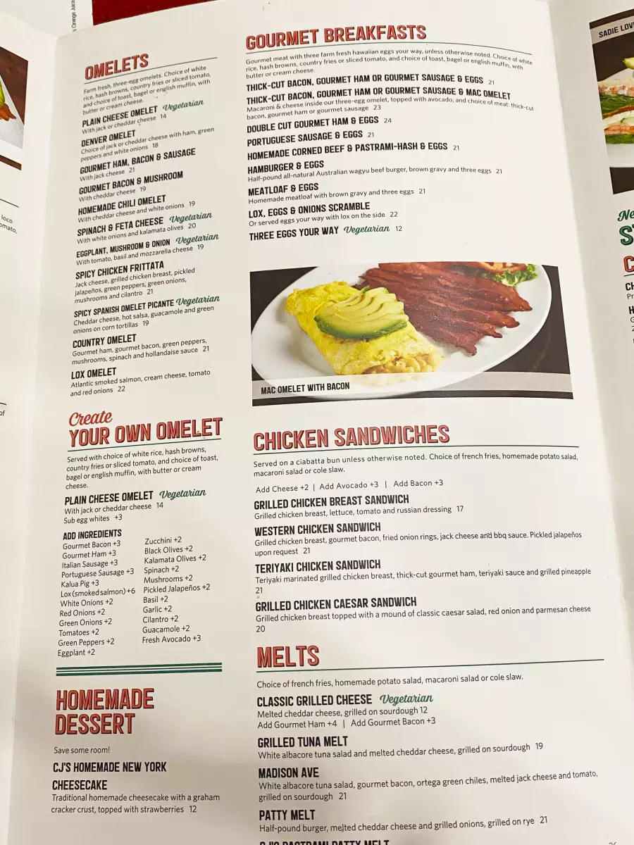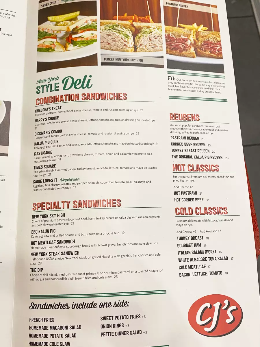 20:30頃。「CJ's ニューヨークスタイルデリ」で、ハンバーガー(CJ'S PASTRAMI PATTY MELT($26))とガーリックシュリンプ($24)、バドワイザー($7.5)を注文(計$68.84、約9,500)。